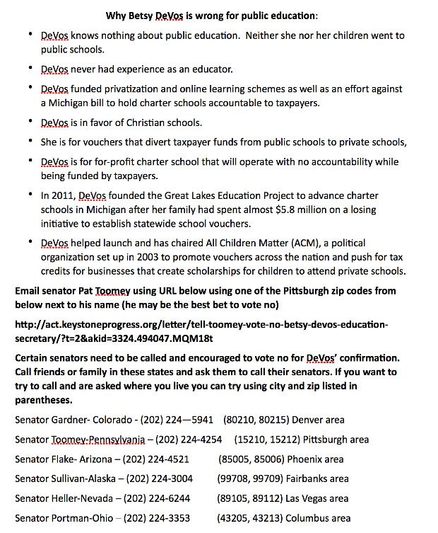A New York teacher’s union is imploring members to pressure U.S. senators to vote ‘No’ on the confirmation of Betsy DeVos for Secretary of Education.